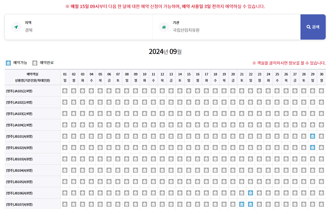 전화예약도 가능하지만 홈페이지에서 예약조회페이지에서 예약가능한 객실을 조회해 보는 것이 편합니다.